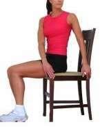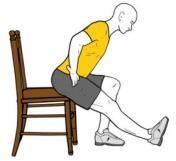 1. Colocándose detrás del respaldo de la silla, un pie delante del otro inclinándose hacia el respaldo de la silla, aplicando todo el peso del cuerpo sobre la pierna que está delante de la otra. Se inhala y se exhala durante 10 segundos. Y luego se hace cambio de pierna.