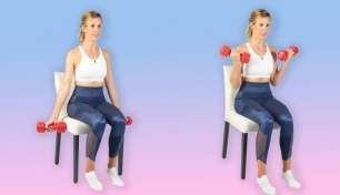 3. Sentado en una silla moveremos los hombros de arriba hacia abajo por 10 segundos, realizar 2 repeticiones