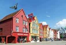 Explore this once bustling seaport town situated between fjords in southwestern Norway. Bergen is at once modern and medieval, and the Hanseatic League’s influence is still evident in its colorful wooden clapboard wharf. Tour the waterfront, the Maritime Museum, and dine atop Fløyen Mountain with panoramic views.