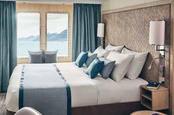 PUBLIC AREAS: Observation lounge with bar, three dining areas, gym, wellness area, infinity-style outdoor hot tubs, library, main lounge with full service bar, 24-hour beverage, state-of-the-art facilities for films, slideshows and presentations, and a photo workshop area; plus, an expedition base with lockers for expedition gear, and an “open Bridge” for access to our captain, officers and the art of navigation.