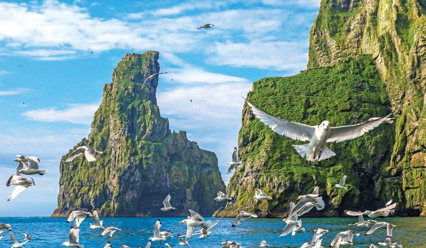 • Sail up to rock-wall rookeries teeming with thousands of birds, see pelagic species from the ship’s rail while sailing and Zodiac cruise near a cloud of feeding Arctic terns.