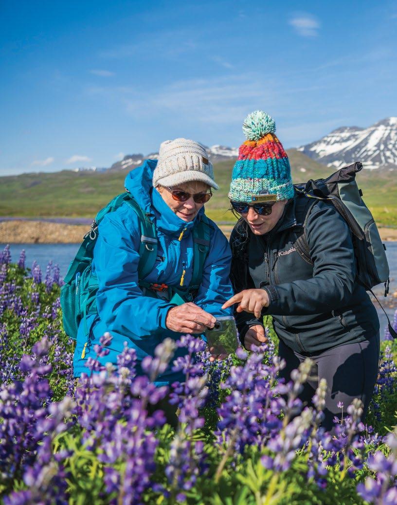 National Geographic Photographer Chloe Nunn helps a guest capture images of lupine.