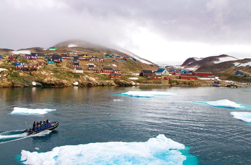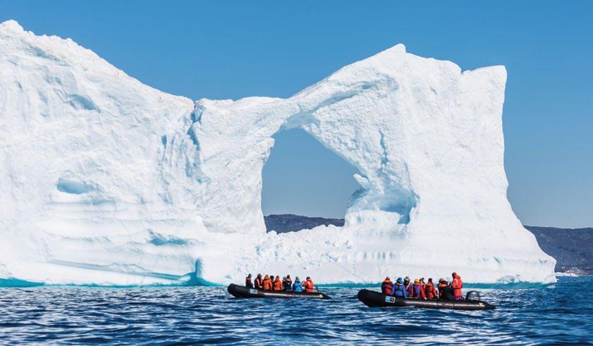 • Explore by kayak or Zodiac, gliding between astonishing icebergs flowing from the North Pole along Greenland’s coast.