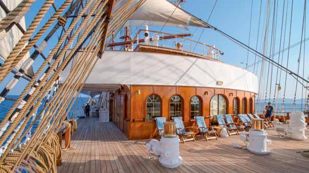Inspired by the historic Sea Cloud and designed with a host of modern amenities to give her a unique sailing style, this elegant, three-masted tall ship features spacious and well-appointed accommodations, a spa and fitness room, indoor and outdoor dining options, a library, and four generous natural wood decks that invite relaxation at sea. Guests can experience the thrill of seeing the ship’s rigging raised by hand as we glide under billowing sails from one historic Mediterranean port to the next, immersed in the splendor of a bygone era.
