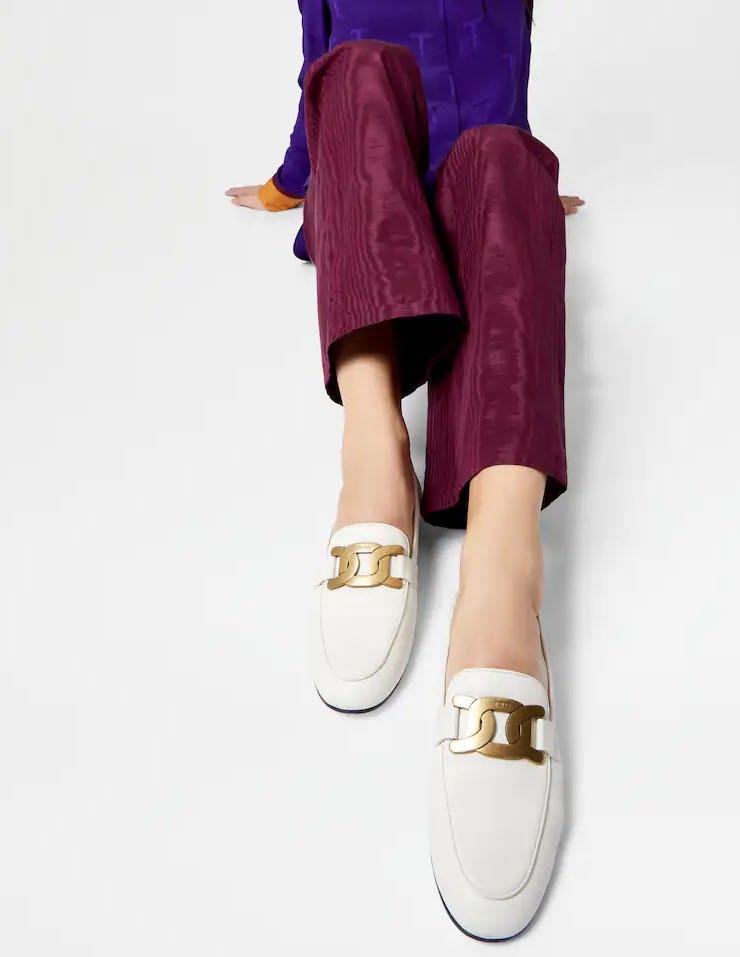 Bolso Secchiello con forma de trapecio en suave piel con grano evidente, logotipo Tod’s impreso en la parte frontal, mocasín en refinada piel con accesorio en metal con logotipo y suela de cuero.