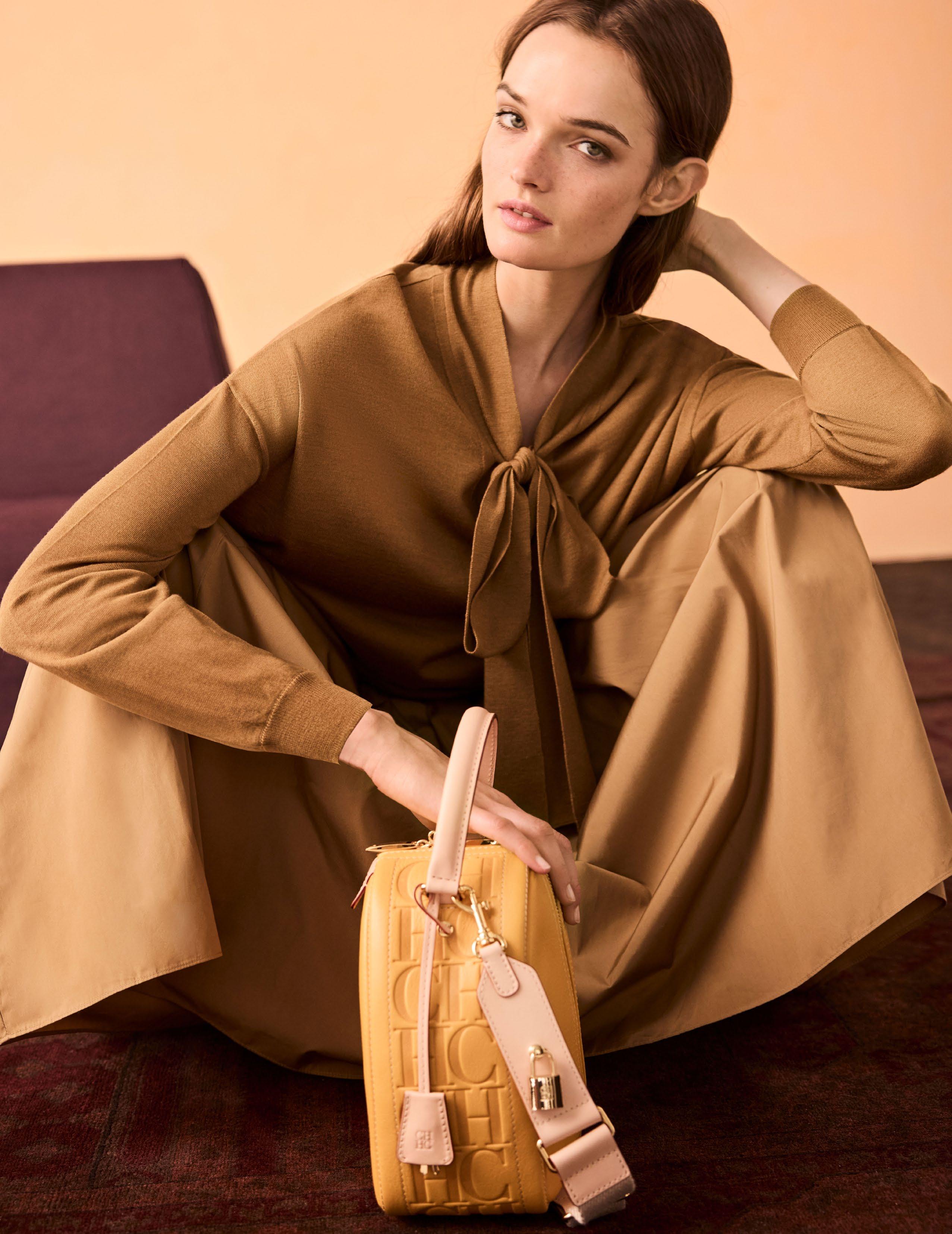 Prefall de CH Carolina Herrera ilumina con tonos naranja, burdeos y tierra.