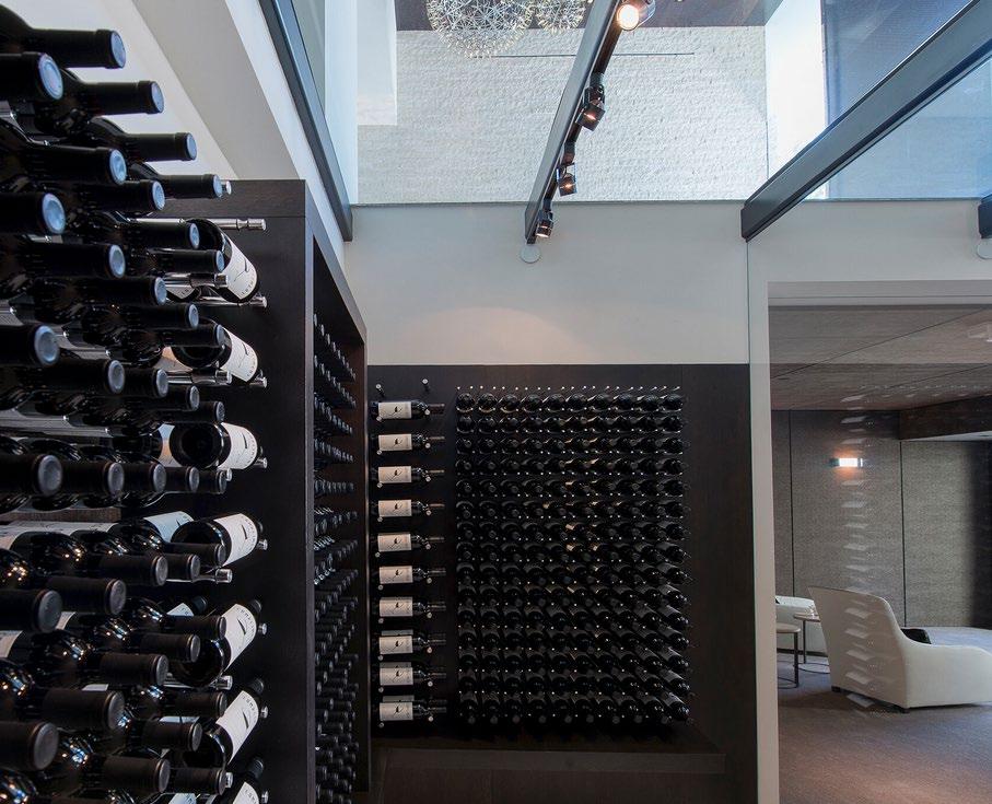 vidrio revela una bodega debajo, con almacenamiento para 1000 botellas, y escaleras de madera de wengué en voladizo, que flotan hacia los dormitorios.