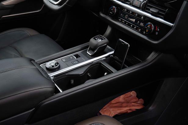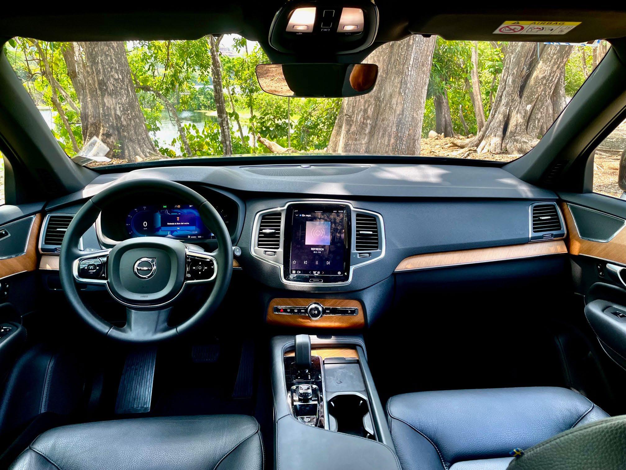 La calidad permea todo recoveco u orificio en el interior. Piel suave o tela de algodón, madera sin brillo, botones metálicos, consola central de aluminio incluyendo las bocinas y hasta la palanca de cristal de Orrefors, aumenta la atención al detalle. Muy conocida por asientos de gran confort y ergonomía, el XC90 continua la tradición de ofrecer suave pero bien pensado albergue para los ocupantes bajo el techo panorámico. La posición de manejo es alta con generosa visión hacia afuera. Como la competencia entre camionetas de tres filas de asientos, puedo albergar una decente cantidad de carga, pero no al mismo tiempo. Si se abate la tercera fila de asientos,el Volvo acomoda gran cantidad de equipaje o el super de un mes para las vacaciones en el interior. Dentro de la cabina hay espacio para guardar objetos, pero no mucho. Apple CarPlay también viene de serie, además Android Auto y mapas/operación Google. La consola central pequeña pero poderosa incluye acceso al navegador, estéreo, celular y clima. Hay botones reales para volumen y radio y por control de voz Google Assitant puedo predeterminar activación de funciones.