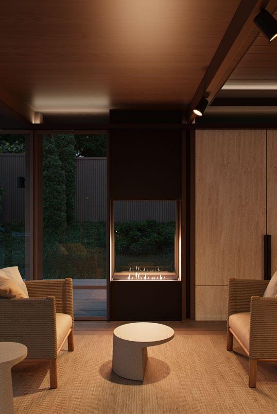 La suite Master / Mistress, aislada en el último piso, se abre a una amplia terraza con jacuzzi, áreas para tomar el sol, relajarse y disfrutar de las luces nocturnas de la ciudad, a la luz suave de una chimenea de 18 pies. En el interior, las paredes de vidrio brindan sol y vistas durante el día, junto con una cama Minotti Moore de poca altura, elegante pero cálida, para la noche. Las actividades nocturnas continúan con la ayuda de una chimenea de vidrio de 60 ”y un televisor de 65” contra puertas coplanares de laca, que se abren a un bar. Para la rutina de la mañana, el baño principal ofrece una bañera independiente, junto con lavabos y 88 www.agendalatam.com