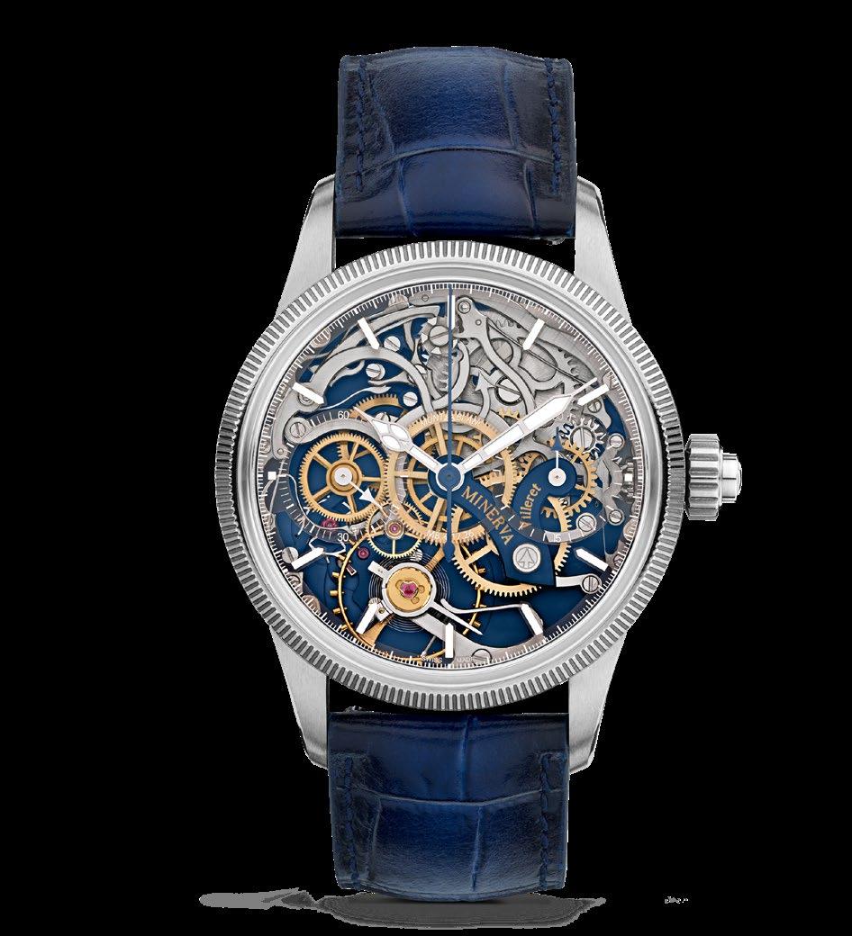 El Montblanc Minerva Monopusher Chronograph Limited Edition ofrece una vista ininterrumpida del calibre MB M16.29 de la Maison, que se ha invertido para revelar toda la magia del movimiento del cronógrafo. Girar un movimiento parece simple, pero es una proeza técnica muestra detalles fascinantes por descubrir. Esta nueva edición limitada incluye cinco aberturas en la banda de la caja, lo que permite que la luz inunde el movimiento de cuerda manual acabado a mano. Los diseñadores de Montblanc han adoptado un enfoque verdaderamente arquitectónico en todo el reloj para crear un juego de luz y profundidad que fluye a través del movimiento construido sobre pilares, de modo que el usuario pueda admirar plenamente los 291 componentes a través de cinco ventanas de cristal diferentes. Diámetro 43mm, bisel estriado de oro blanco, correa de nubuck negro con un cierre triple.