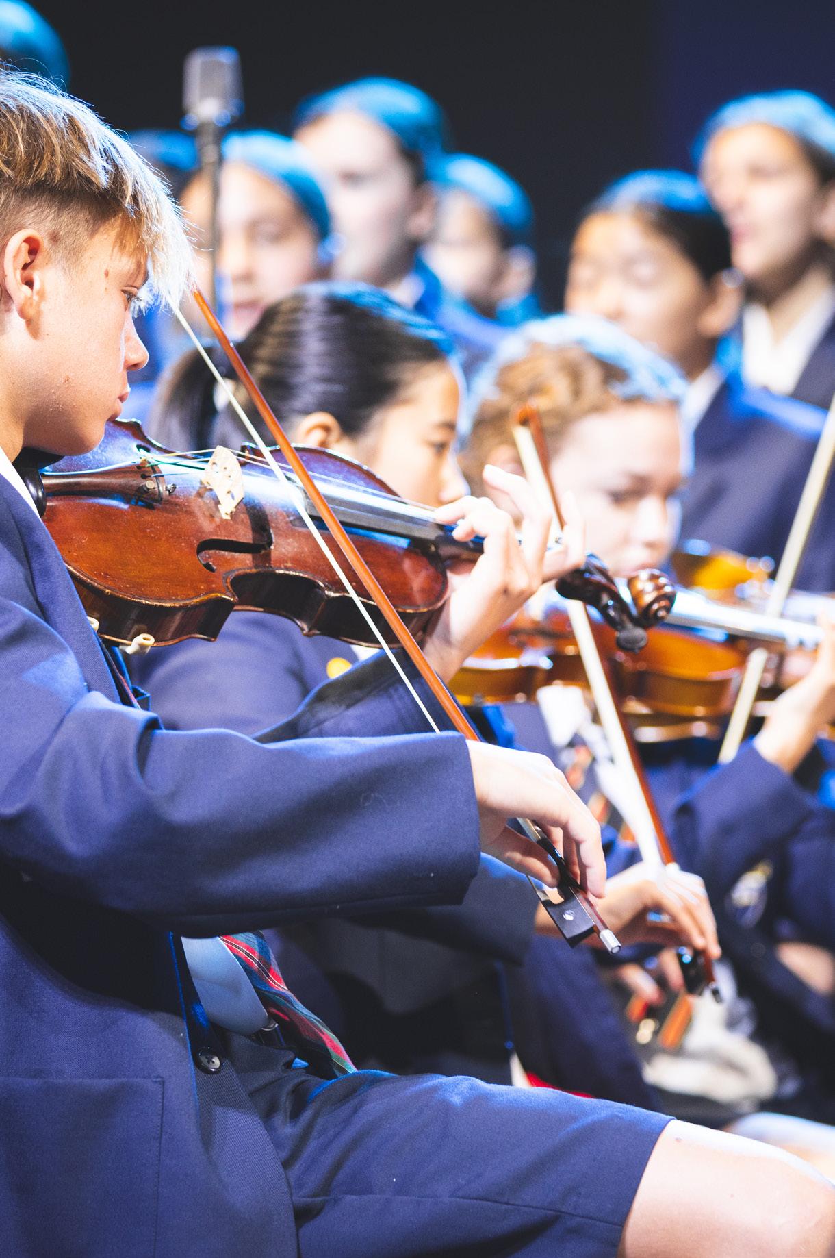 Equally vital to this vision is the school’s Year 4 and Year 5 Band Program, which provides students with a handson introduction to woodwind, brass and percussion instruments. These students are essential to the orchestra’s future, as they will form the core of the Symphony Orchestra’s wind and brass sections in their senior schooling years. Their inclusion not only broadens musical understanding but also creates a unique collaborative environment where the warmth of strings blends with the vibrancy of winds, brass and percussion. For many, this will be their first experience performing in a full symphony orchestra, an invaluable and transformative opportunity.