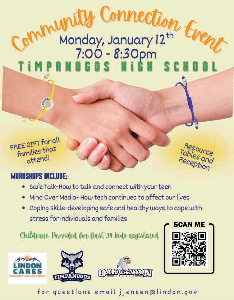 Lindon Cares is an evidence-based prevention coalition working to strengthen families, build community resilience, and reduce the risk of addiction, substance misuse, abuse, and suicide. Gather more information, sign up for free classes, or search local resources at lindonrecreation.org/lindoncares.