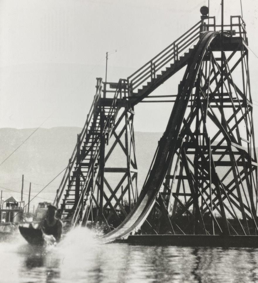 A giant tabogan slide, built in the 1920’s, was one of the many lakeside attractions at the Geneva Resort. The rodeo arena in the