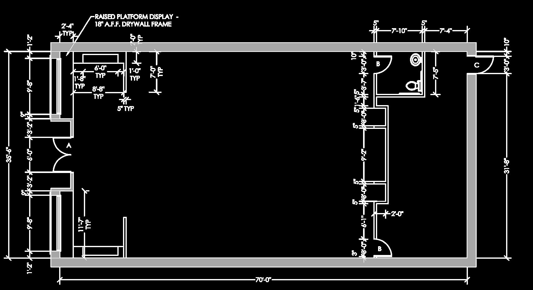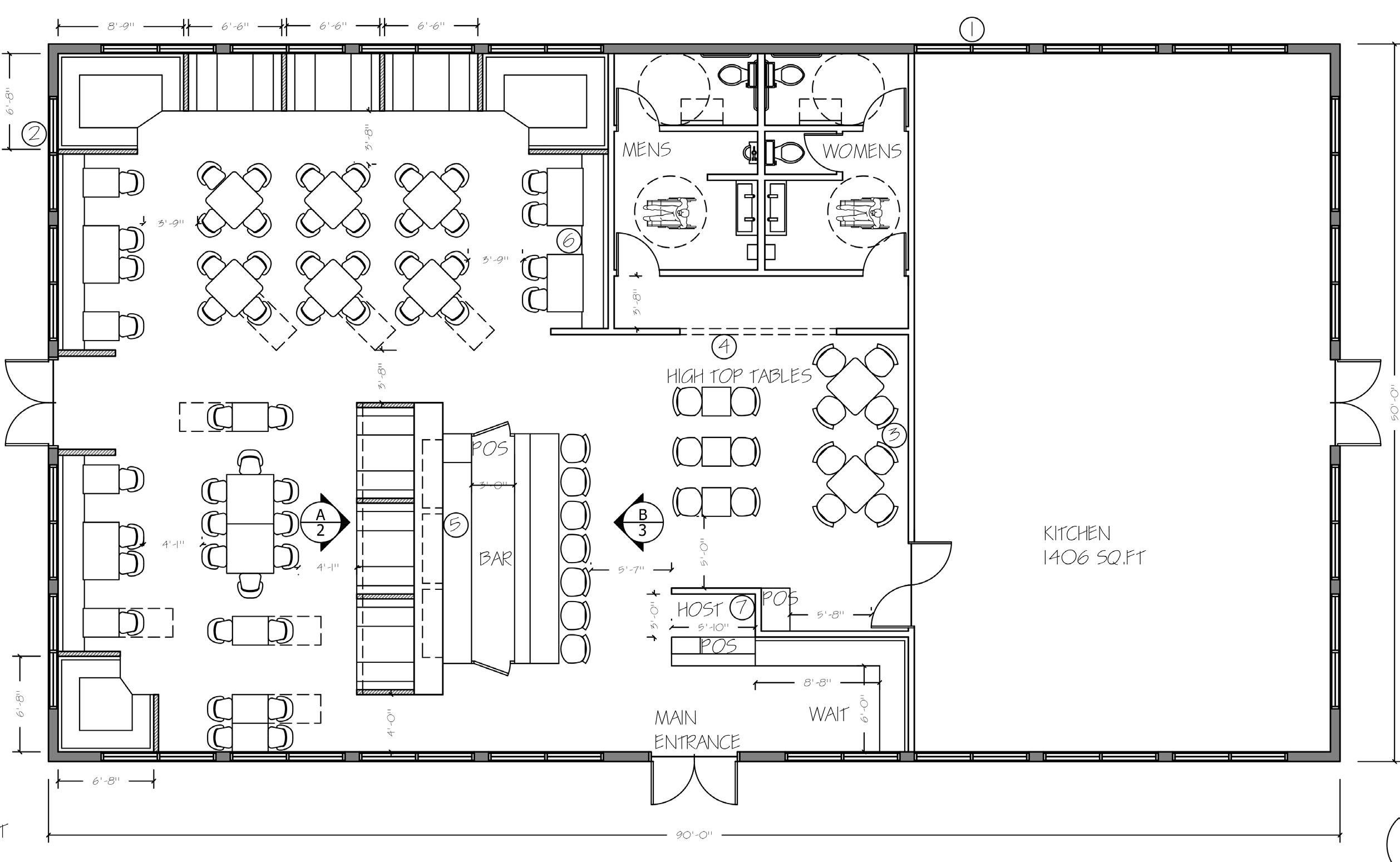 - Walls to divide spaces; 11’ ceiling throughout main dining/bar