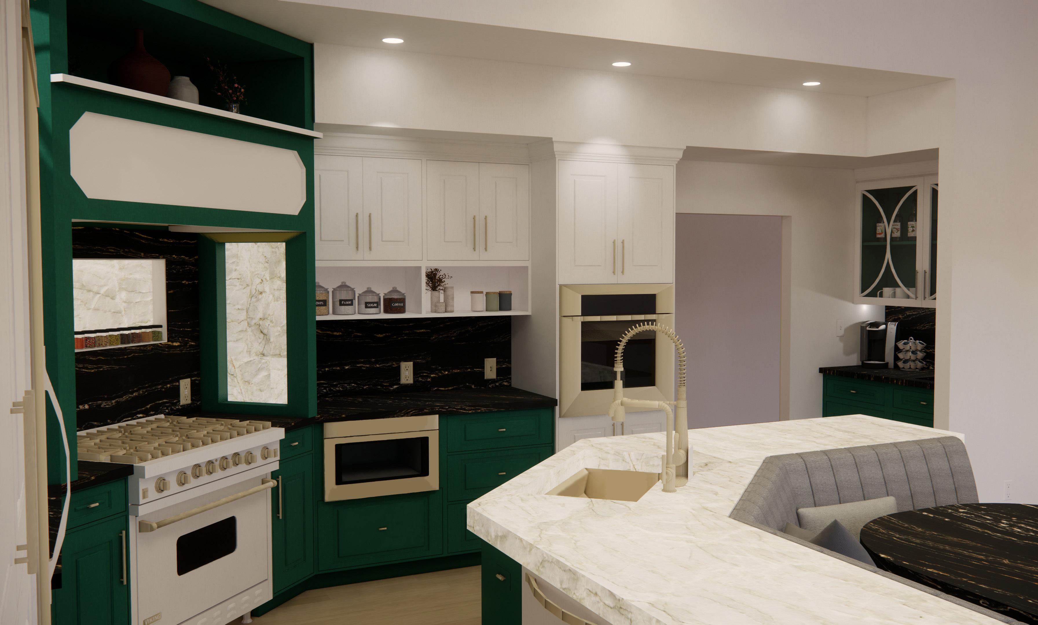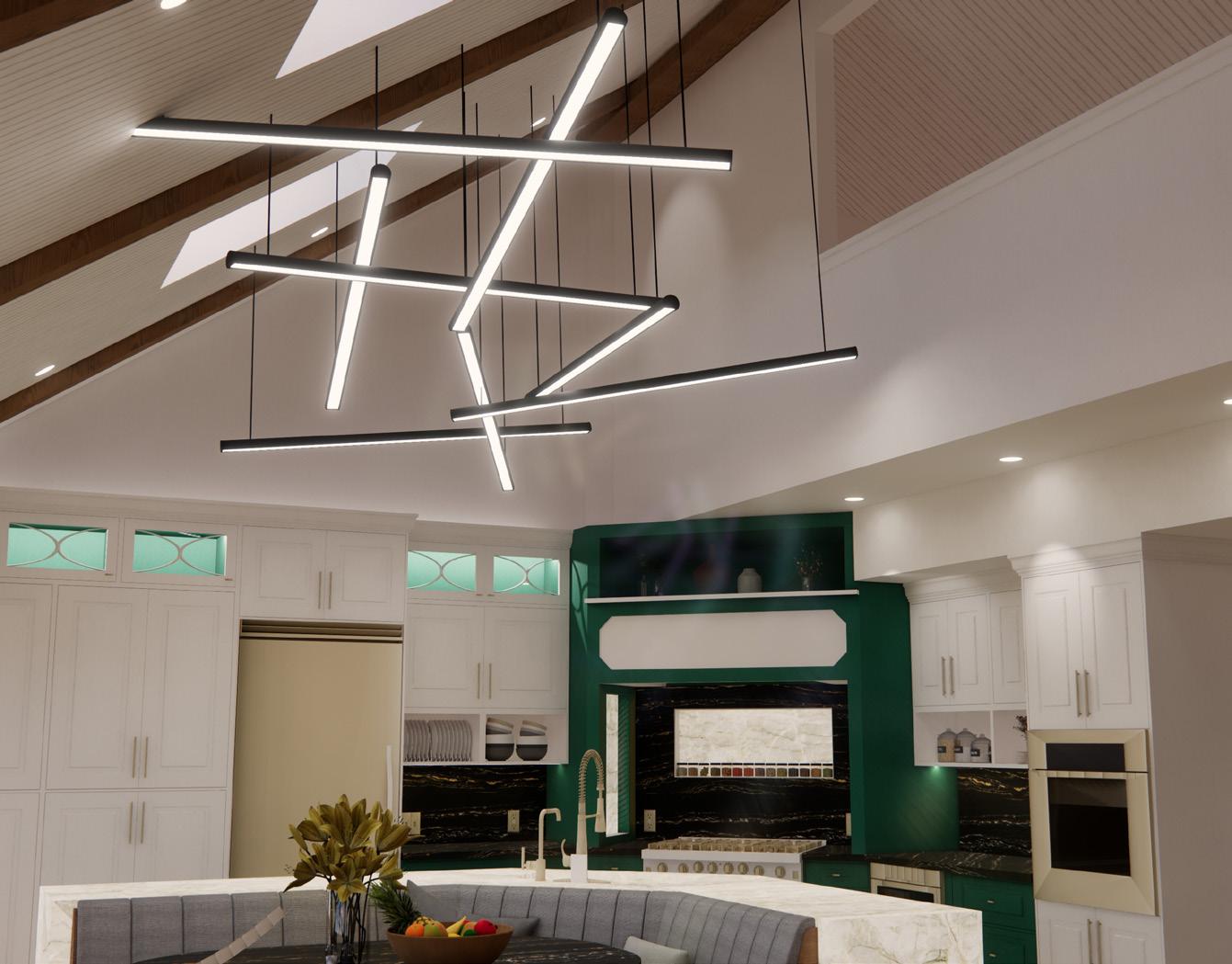 - Added architectural lighting to provide visual interest and warm up the kitchen