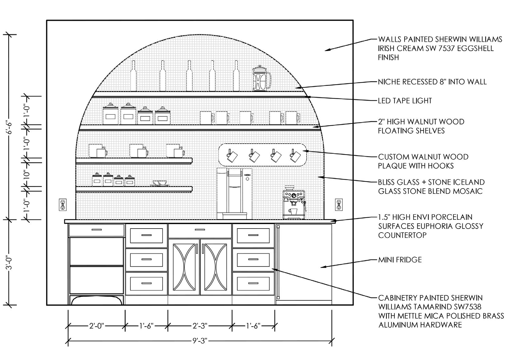 - Built a wall between load bearing walls to close off and create a coffee bar
