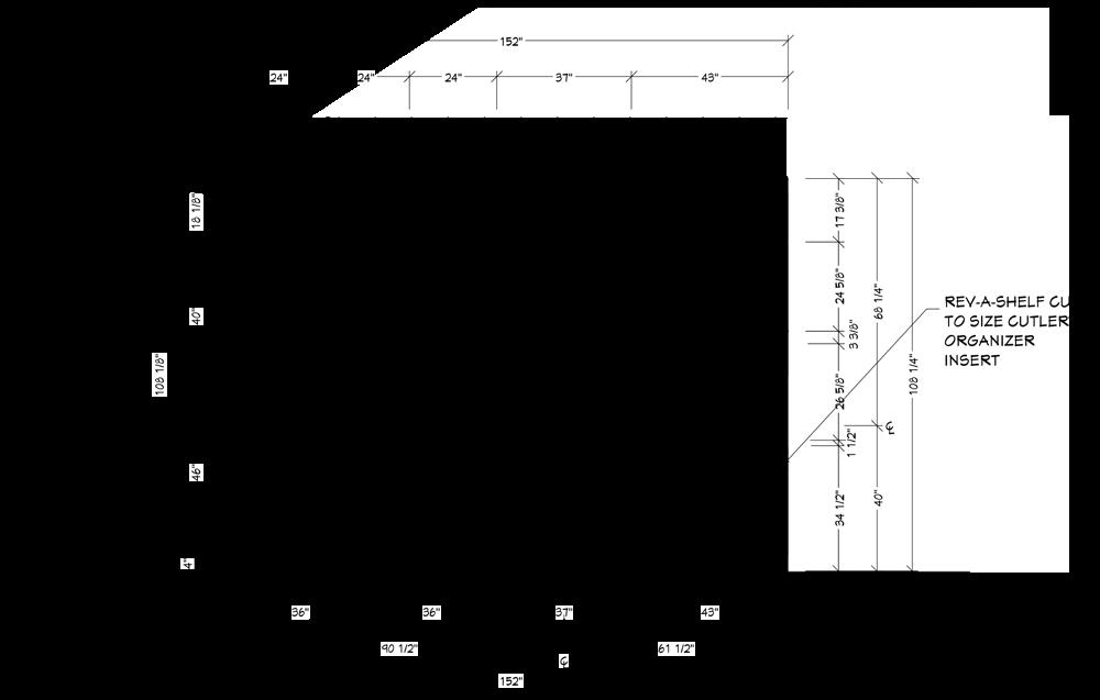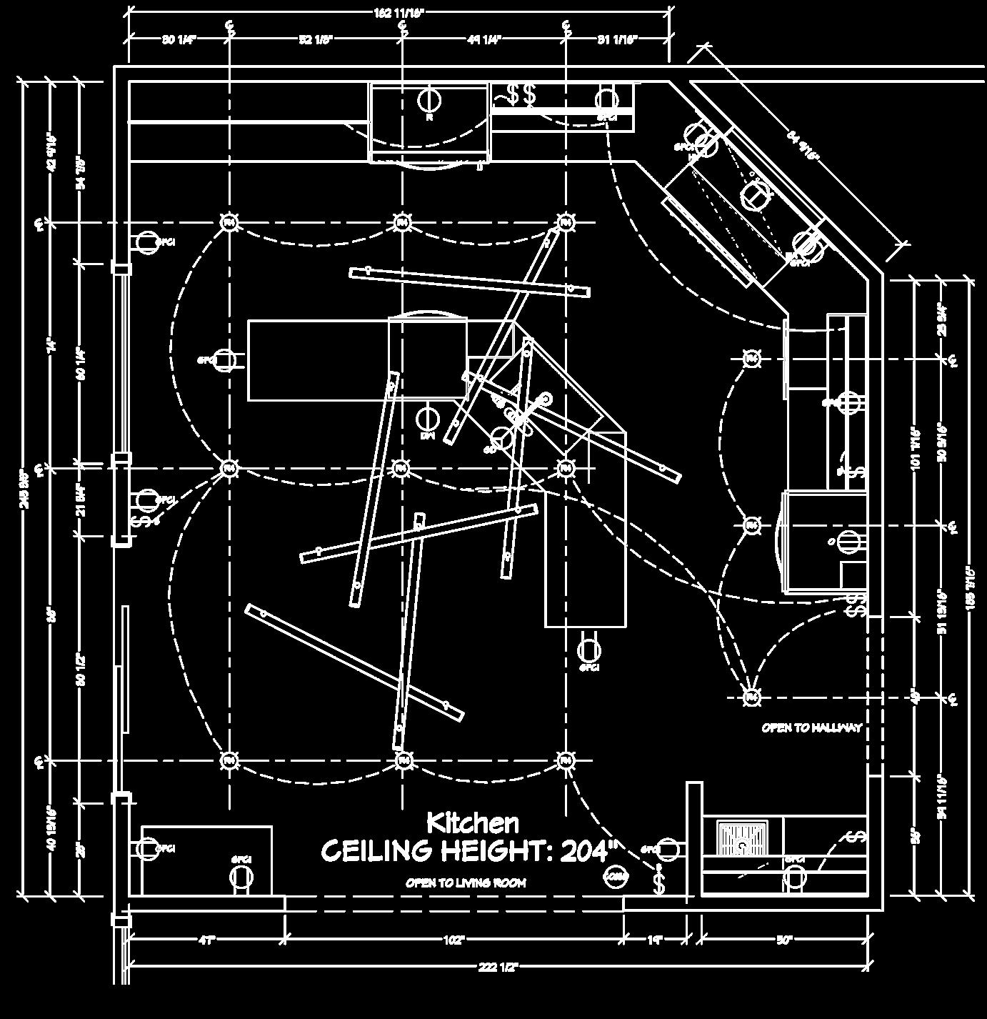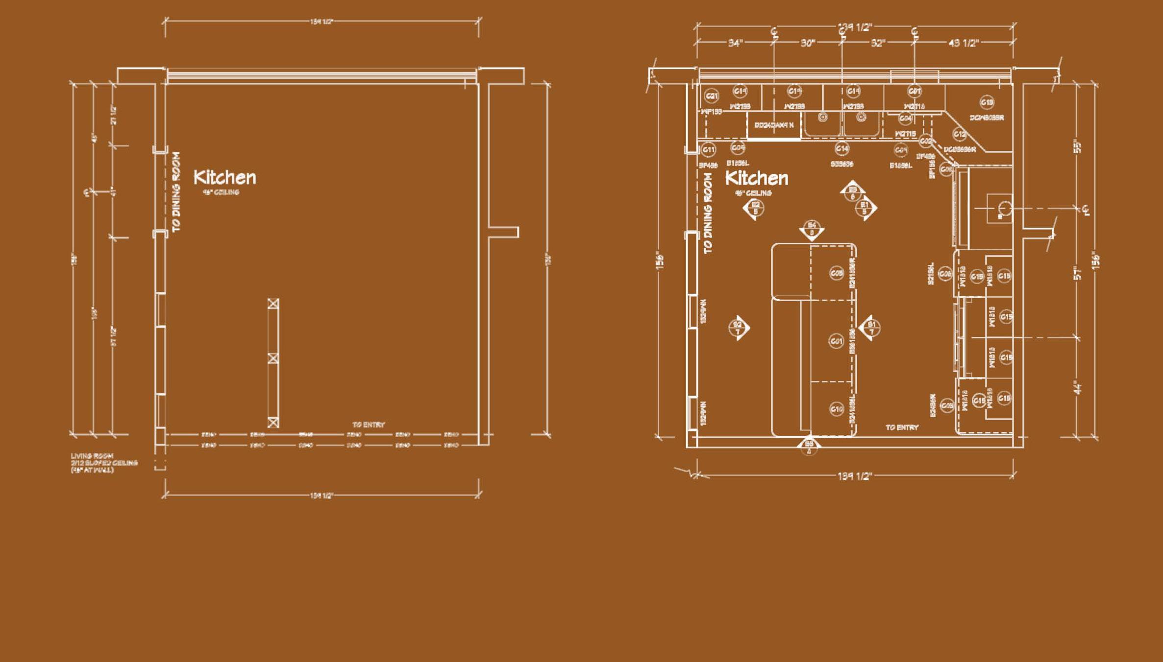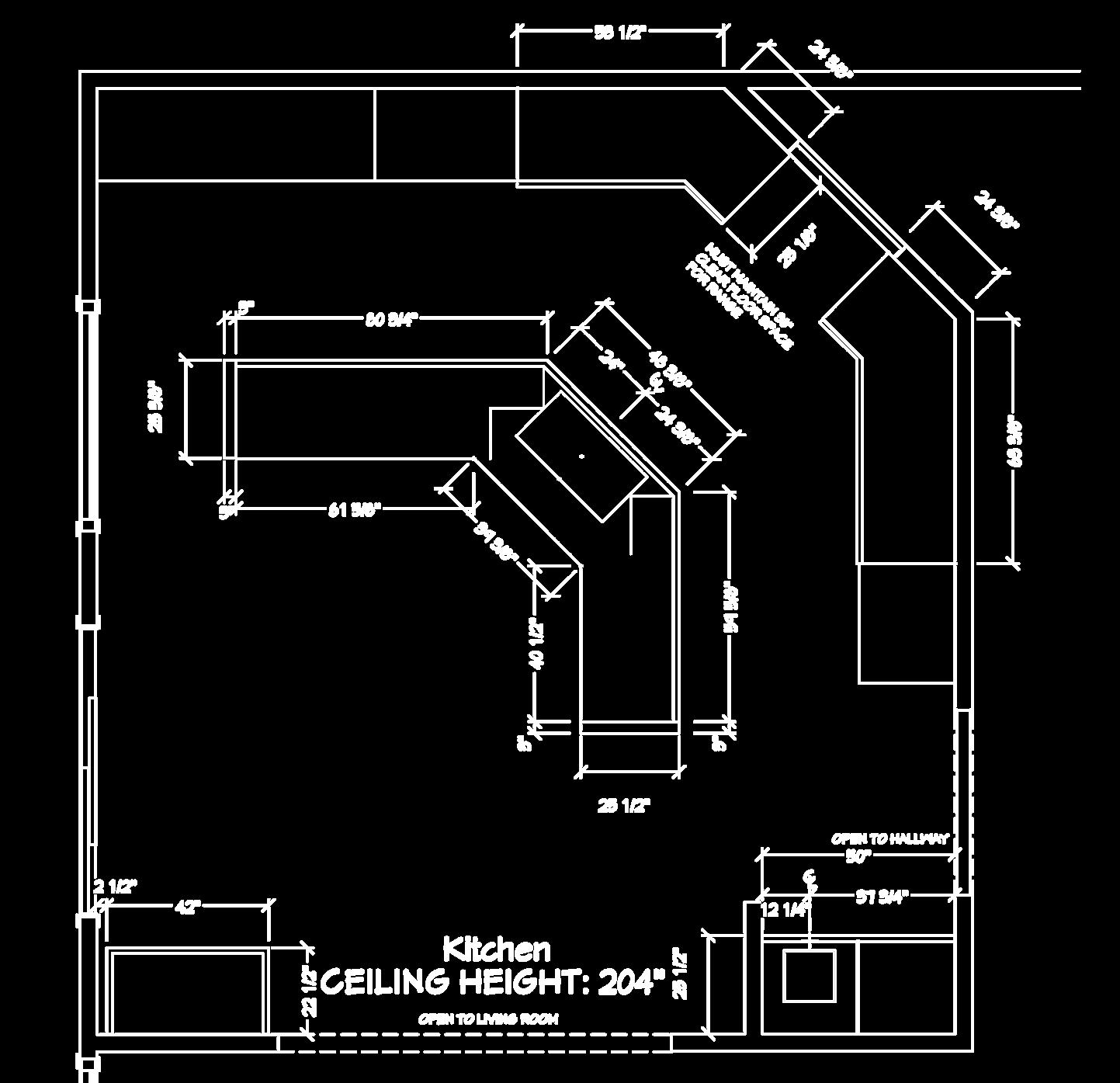 - Do something new with the island to use more space and fix the awkward angle (refer to binder for current floor plan)