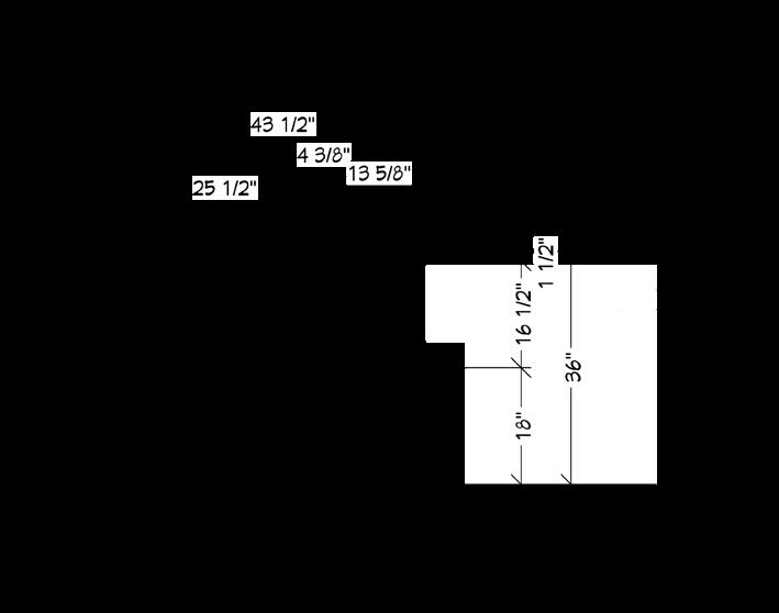 - Inverted island angle to match the angle of the walls and to meet the NKBA work triangle guidelines