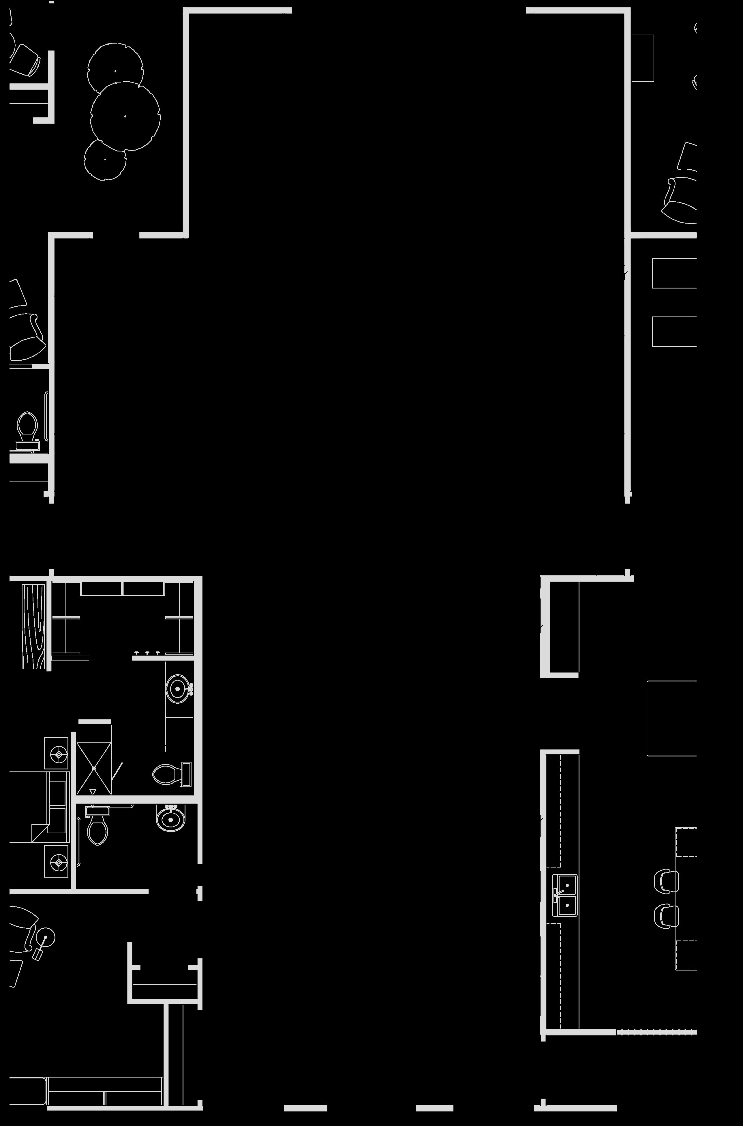 - Compliant bathrooms; ADA stall with 5’ turning radii, roll up sinks, appropriate fixtures, grab bars in ADA stalls