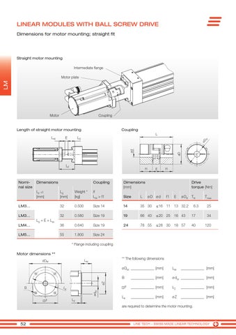 LINEAR MODULES with ball screw drive Dimensions for motor mounting; straight fit