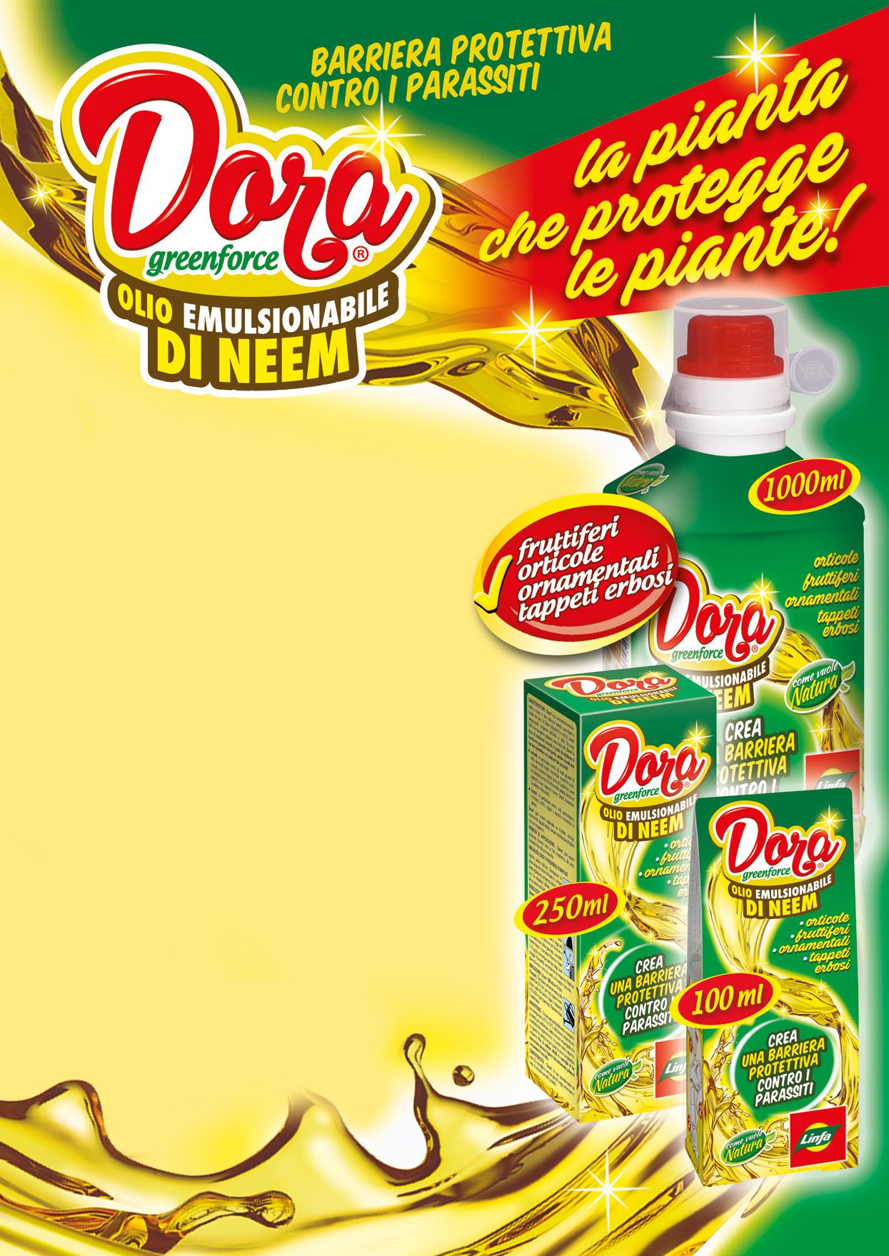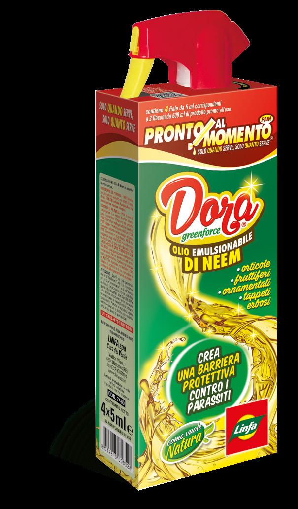Caratteristiche - Dora® è un concentrato emulsionabile a base di olio ottenuto tramite spremitura a freddo dei semi di Neem (Azadirachta indica), pianta sempreverde originaria dell’India e della Birmania. Dall’odore pungente, agliaceo, simile allo zolfo, Dora® è ricco di nutrimenti naturali in grado di migliorare il benessere generale delle piante, anche creando una barriera protettiva nei confronti dei parassiti: