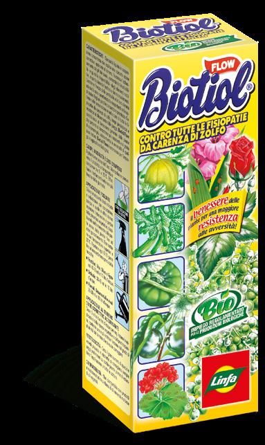 Se applicato al terreno, esplica una spiccata azione correttiva: favorendo l’abbassamento del pH del suolo, aumenta la solubilità (e quindi la disponibilità) degli elementi nutritivi, in particolare del fosforo e dei microelementi. Biotiol Flow contribuisce al benessere generale delle piante che pertanto si dimostrano più resistenti e in grado di superare più velocemente le avversità di qualsiasi natura. Biotiol Flow è ammesso per l’impiego in agricoltura biologica. Campi, modalità e dosi d’impiego - Agitare bene prima dell’uso.