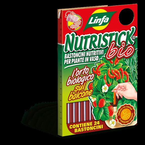 Caratteristiche generali - Nutristick e Nutristick Bio sono bastoncini nutritivi ottenuti attraverso estrusione ed essiccazione di una pasta che, oltre agli elementi fertilizzanti, contiene una significativa quantità di bentonite. Questa argilla naturale conferisce al prodotto delle specifiche proprietà sia in termine di assorbimento idrico che di trattenimento e rilascio controllato degli elementi nutritivi. Ad ogni annaffiatura Nutristick eroga nel substrato un flusso nutritivo costante, contenente tutti gli elementi per uno sviluppo armonioso della pianta, senza rischi di salinità eccessive e perdite per dilavamento. Tutti i componenti sono biodegradabili e quindi non lasciano residui nel terreno. A parità di peso, Nutristick assicura un apporto di elementi fertilizzanti da 2 a 3 volte superiore rispetto ai bastoncini nutritivi a base di fibra di cellulosa o alcool polivinilico.
