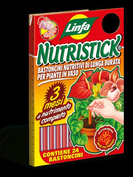Caratteristiche - Anche per la presenza di una frazione azotata a lento rilascio (ureaform), il prodotto è di lunga durata attiva (circa 3 mesi): sono quindi sufficienti soltanto 4 somministrazioni all’anno senza necessità di ulteriori concimazioni e quindi anche molto utile per coprire il fabbisogno nutritivo durante i periodi di prolungata assenza. Per queste sue caratteristiche, Nutristick è il sistema di concimazione più consigliato per le coltivazioni amatoriali delle piante ornamentali in vaso.