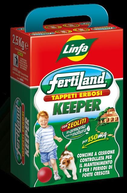 Caratteristiche - Fertiland KEEPER è un concime appositamente studiato per conservare il tappeto erboso in una condizione estetico-nutrizionale ottimale, oltre a sostenerlo in tutti i periodi d’intensa crescita vegetativa (primavera e autunno). Grazie alla speciale formulazione su supporto zeolitico, gli elementi nutritivi vengono rilasciati gradualmente entro 7-8 settimane, senza rischio di eccessi o picchi di salinità. L’intenso ed omogeneo rinverdimento è raggiunto entro cinque-sette giorni dall’applicazione. Il prodotto può essere vantaggiosamente impiegato anche per la concimazione dei nuovi tappeti erbosi “già radicati”, due settimane dopo la germinazione o la posa delle zolle erbose.
