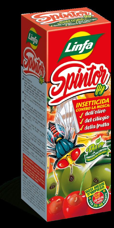 Caratteristiche - Insetticida liquido a base di Spinosad, principio attivo derivante da un naturale processo di fermentazione operato da Saccharopolyspora Spinosa, batterio normalmente presente nel terreno. Grazie alla speciale sostanza proteica, Spintor Fly attrae ed elimina le mosche che infestano i fruttiferi, come Bactrocera oleae (mosca dell’olivo), Bactrocera dorsalis (mosca orientale della frutta), Rhagoletis cerasi (mosca del ciliegio), Ceratitis capitata (mosca degli agrumi). Ammesso per l’impiego in agricoltura biologica ai sensi del Regolamento CE 2092/91 e successive modifiche ed integrazioni.