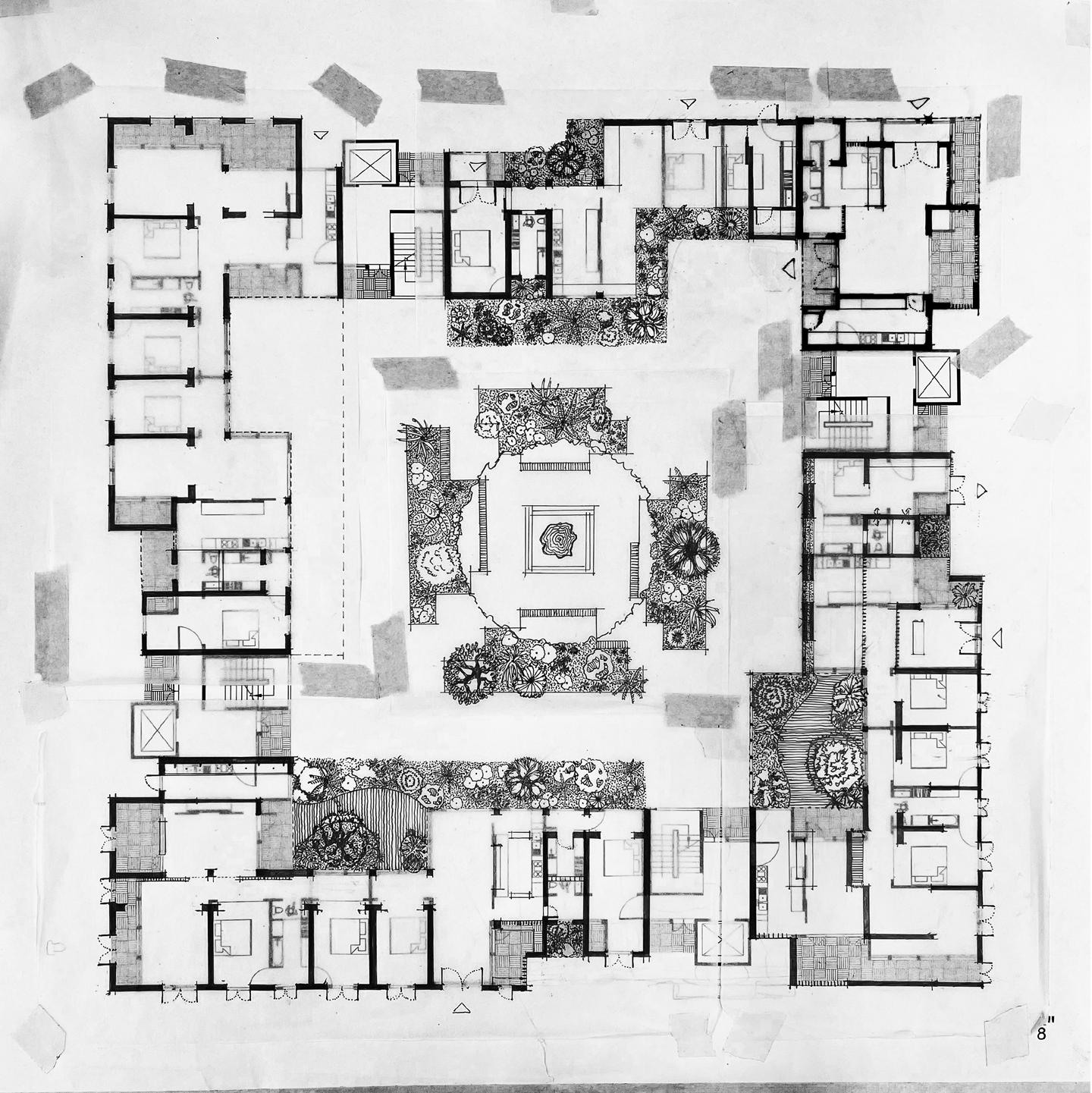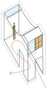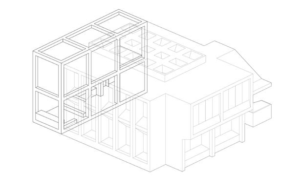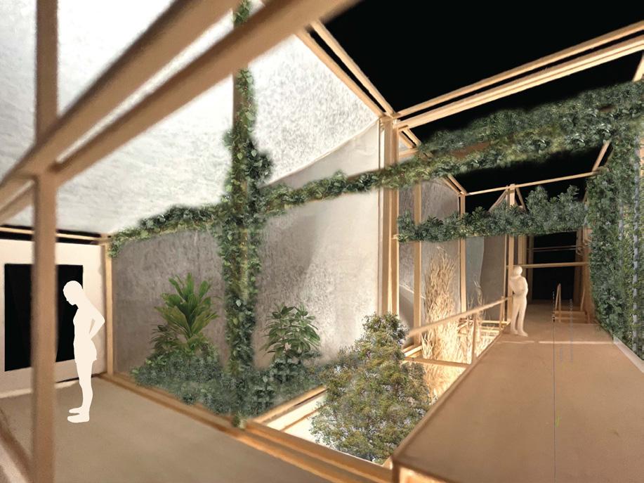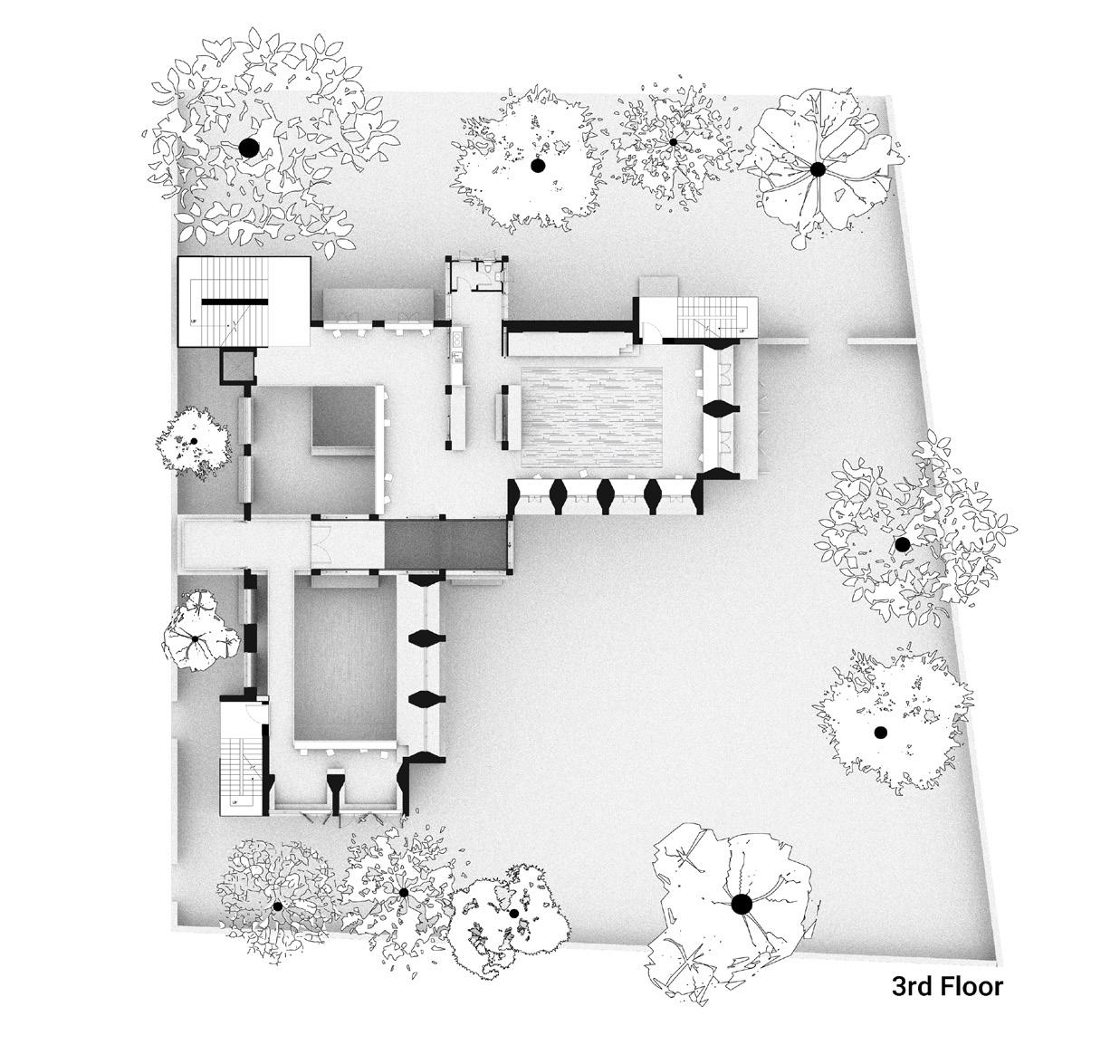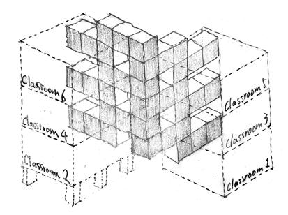 - The servant spaces, entrances, and greenhouses of each classroom are organized in two levels.
