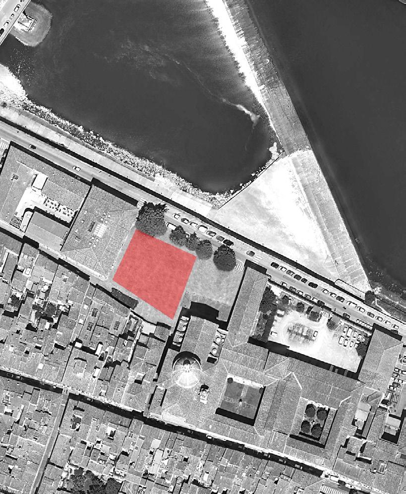 The project is located in a downtown St. Louis parking lot, adjacent to a historic brick building. The renovation involves transforming the building into a public gallery by removing its facade facing the parking lot. The adjacent parking area is converted into a plaza to create a connected public space.