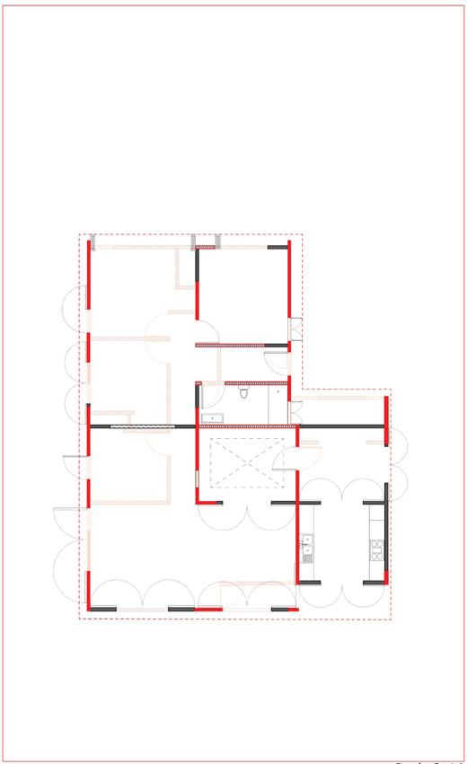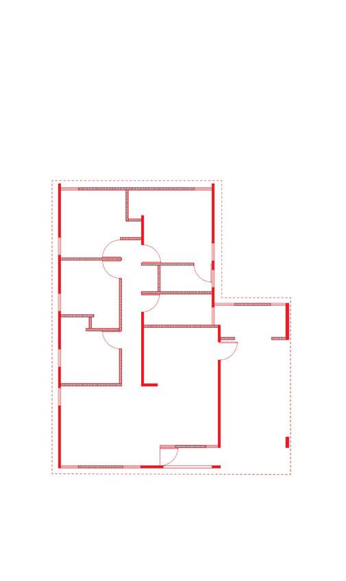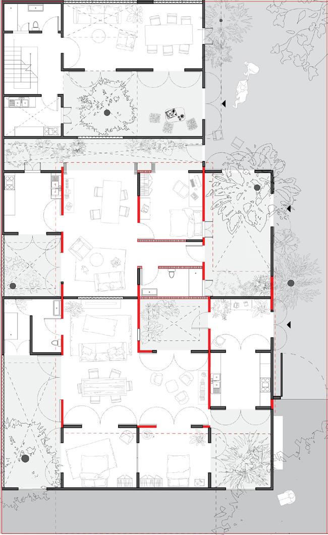 Household 1 Household 2 Household 3 By rotating and mirroring the modified Bilbao plan and removing the designated easily removable non-bearing walls (indicated by wave lines), new combined spaces are created to accommodate various large programs.