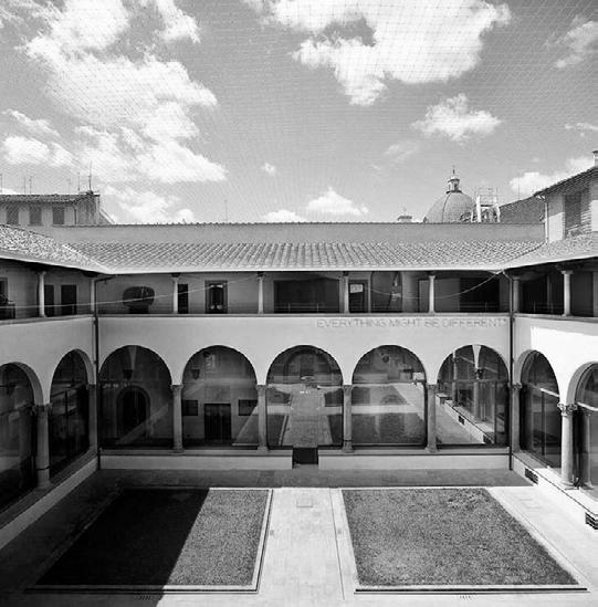 A series of works from different modern artists were selected and used as a premise for a temporary natural light gallery made of heavy timber, glass, and tension cables in the courtyard of Museo Novecento.