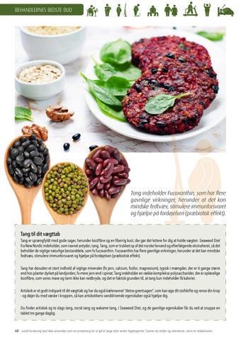 Tang indeholder Fucoxanthin, som har flere gavnlige virkninger, herunder at det kan mindske fedtvæv, stimulere immunforsvaret og hjælpe på fordøjelsen (præbiotisk effekt). Tang til dit vægttab
