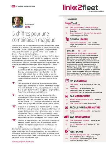 5 chiffres pour une combinaison magique Difficile de ne pas être inspiré lorsqu’on écrit son édito en pleine semaine de la mobilité. Les publications et autres communiqués foisonnent. Chacun y va de ses suggestions, pistes et remèdes - tous plus efficaces les uns que les autres - pour accéder au Graal : « Faire sauter les bouchons. » J’ai pour ma part choisi de m’inspirer de quelques chiffres glanés çà et là pour dresser un rapide constat des problèmes concrets engendrés dans les entreprises par l’immobilité. Ensuite, je me suis arrêté sur quelques initiatives innovantes mises en place par quelques sociétés pionnières ayant décidé de passer à l’action.