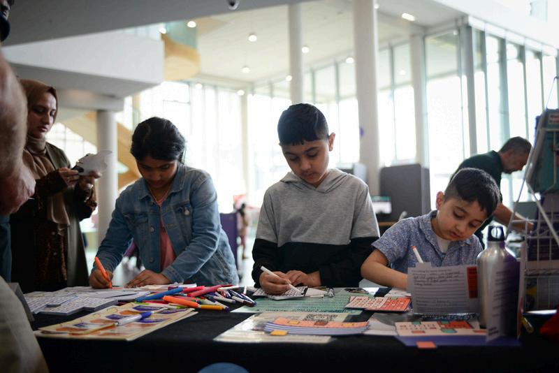 people engaged with activities at the Earth Day event for families at Number One Riverside in April 2024.