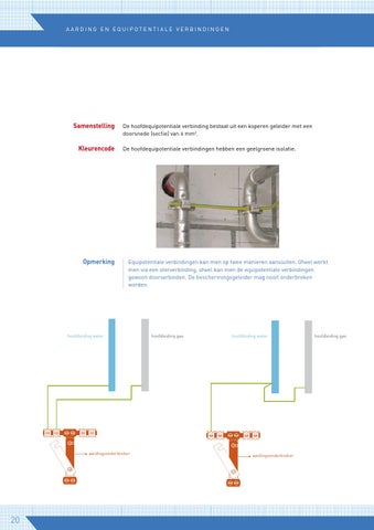 De hoofdequipotentiale verbinding bestaat uit een koperen geleider met een doorsnede (sectie) van 6 mm2. De hoofdequipotentiale verbindingen hebben een geelgroene isolatie.