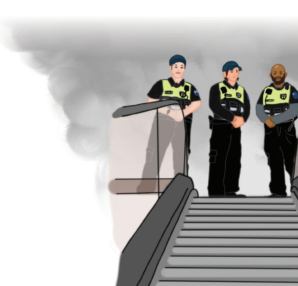 In the rst instance, I was getting o the Green Line at Saint-Laurent station and wasn’t sure what they were doing. I absentmindedly tried to permeate the loose wall of uniformed o cers and go on my merry way home. en, several STM o cers coalesced to form a barrier in my way and demanded that they look at my OPUS card. e whole process seemed a bit absurd, but I complied and only then went on my merry way home.