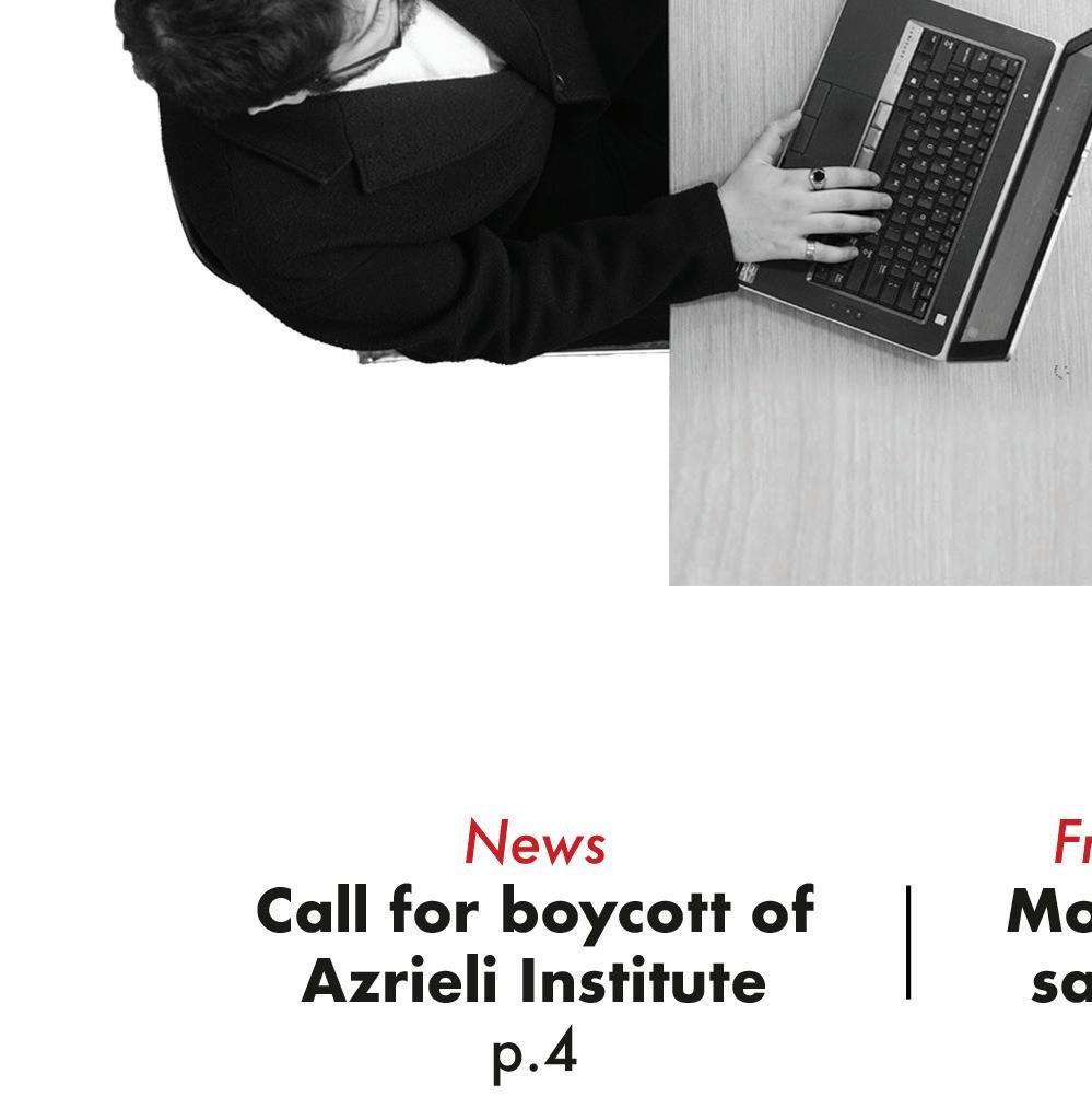 Canadians for Justice and Peace in the Middle East (CJPME) said in a statement to e Link that they also support the call for an academic boycott of the Azrieli Institute. According to the non-pro t, the institute “whitewashes Israel’s crimes against the Palestinian people through the lens