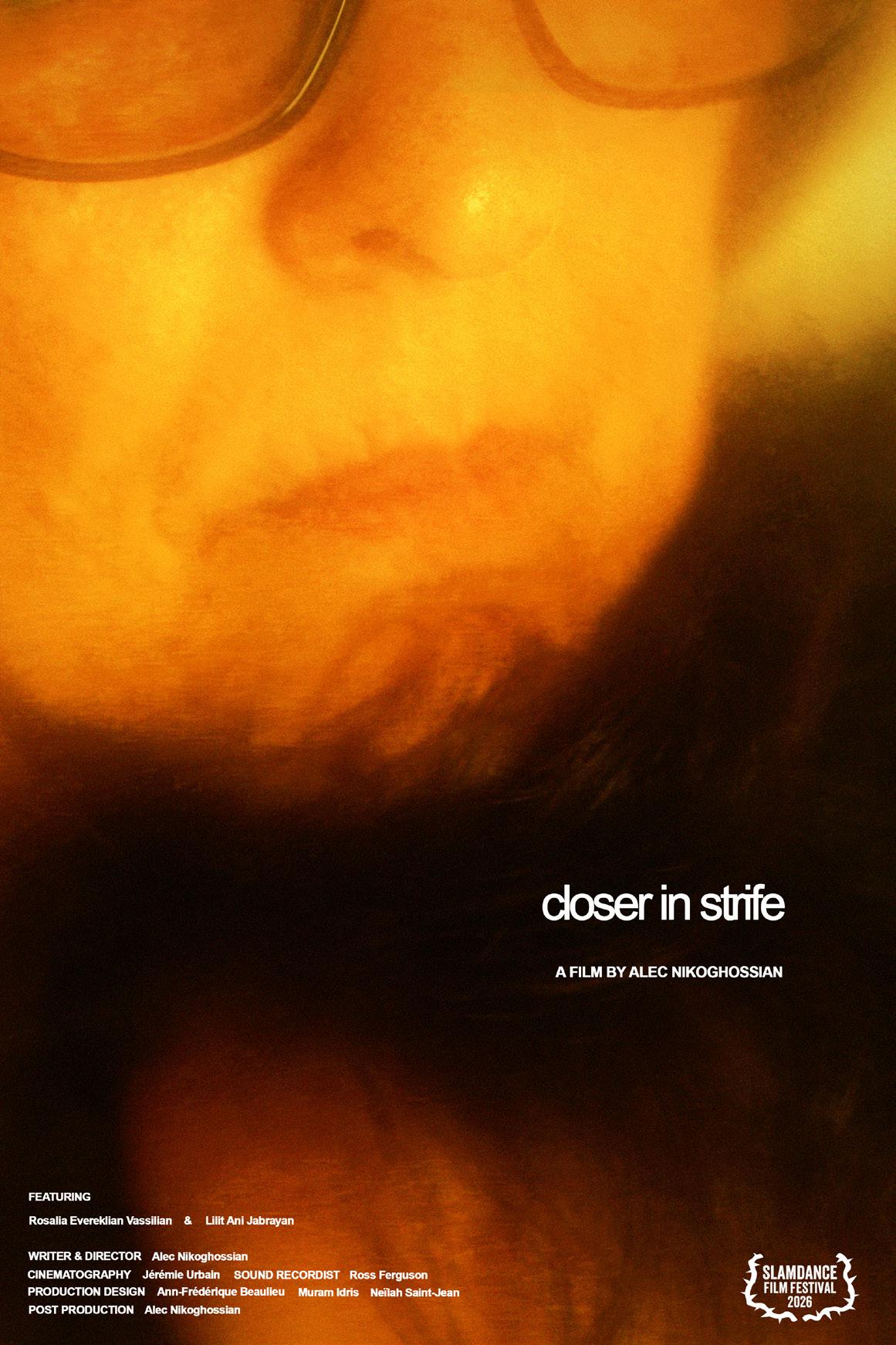 While "Closer in Strife" is a ctional narrative, it is closely informed by moments Nikoghossian has witnessed and conversations he remembers within his family home. Set in Beirut in the lead-up to the 2020 port explosion, the lm re ects how domestic life continues under the weight of an approaching rupture.