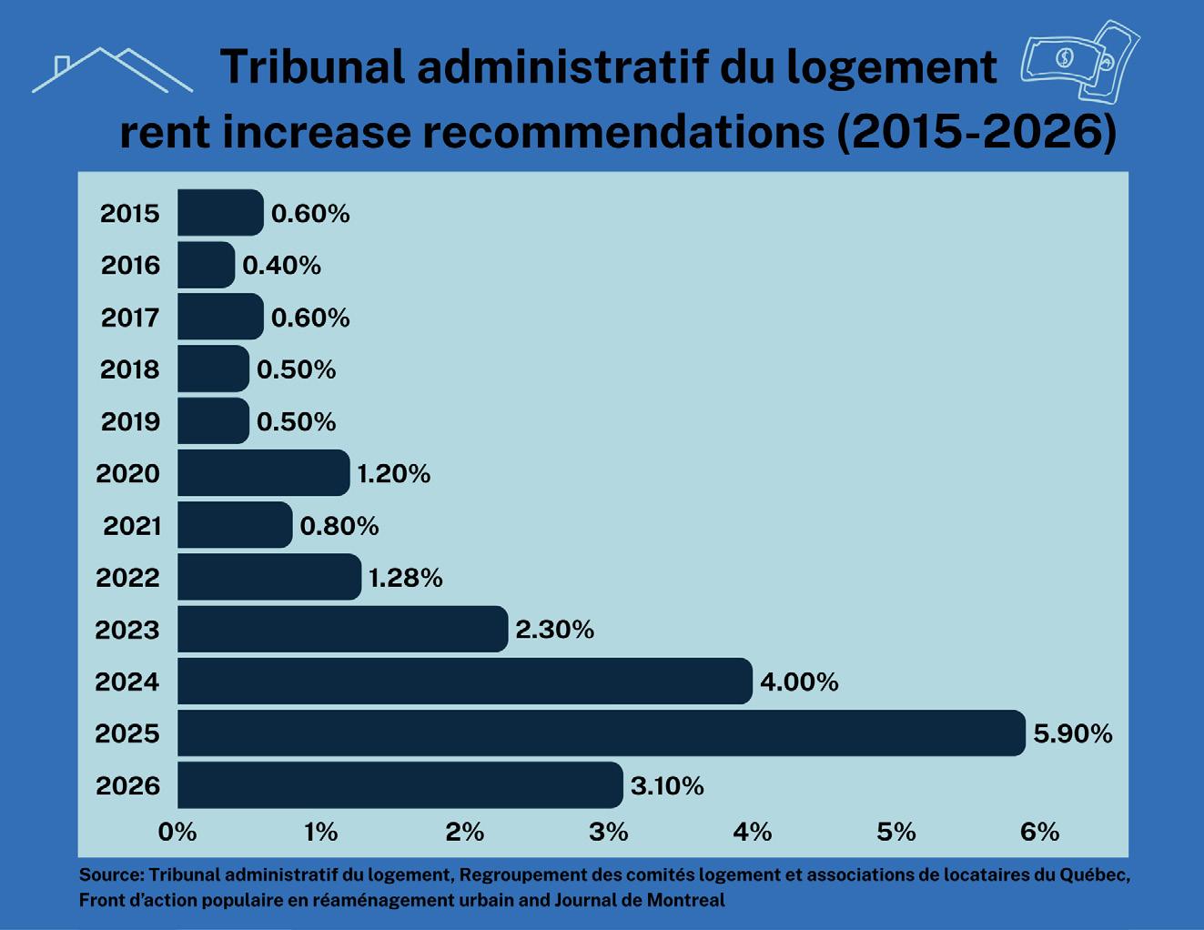 e last-minute demonstration was organized in response to the TAL’s recently implemented basic rent increase recommendation for 2026. e tribunal is recommending a 3.1 per cent rent hike for all Montreal apartments that have not undergone major renovations.