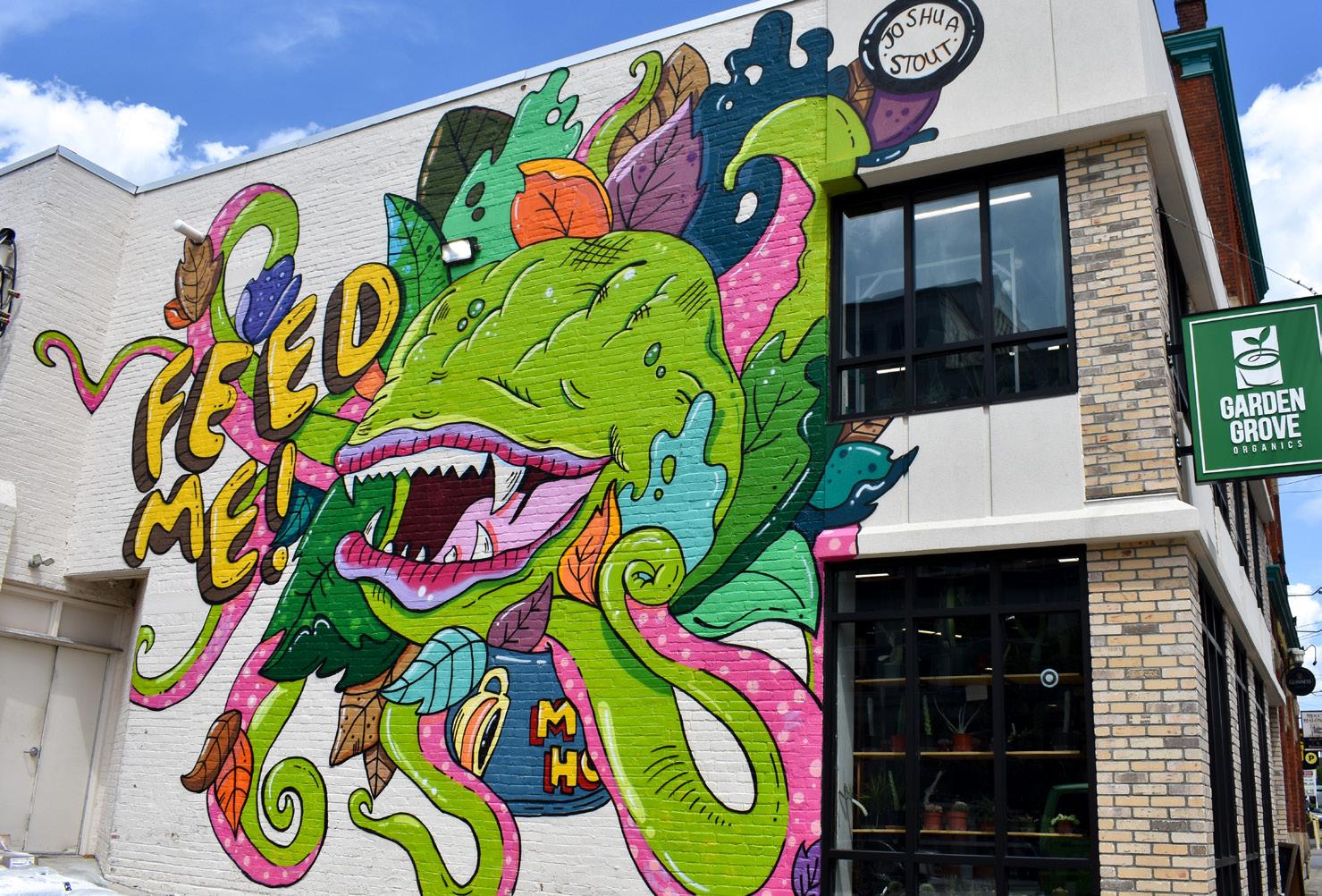 Feed me! Popular mural artist Joshua Stout strikes again at Garden Grove Organics in Covington.