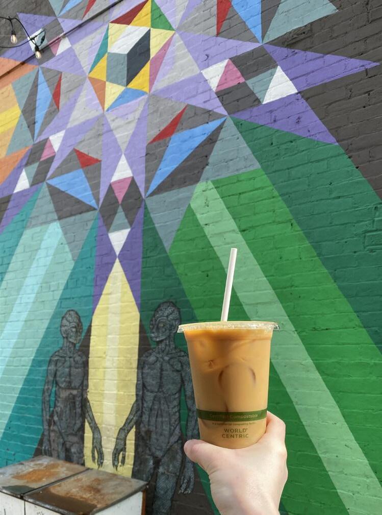 enclosed and feels like a backyard hangout at your hipster friends’ house, complete with colorful murals and greenery. Enjoying a classic latte on the patio is one of the most enjoyable ways one could spend an afternoon.
