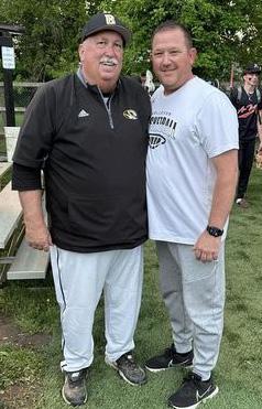 Bellevue baseball coach Rob Sanders stands with Tigers girls basketball coach Tommy Sorrell, his shortstop’s father. Photo provided.