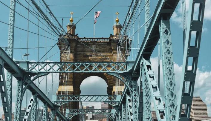 The Roebling Suspension Bridge was the site of a confrontation in July between demonstrators and police. Photo by Hailey Roden | LINK nky contributor Harris