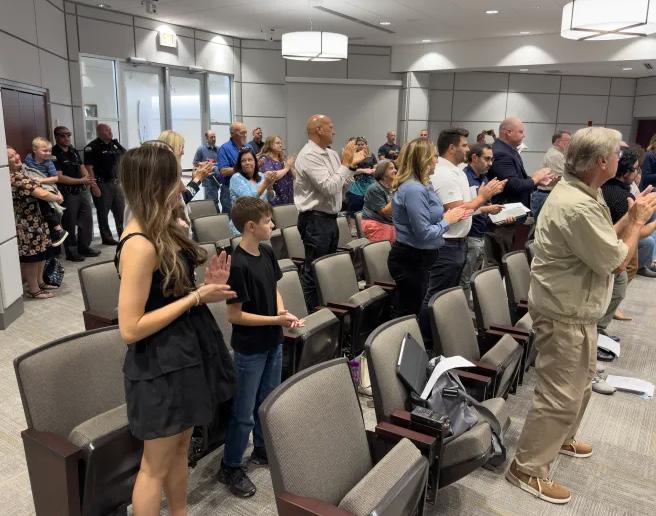Stanaland received a standing ovation as police Chief Jeff Mallery presented the award.