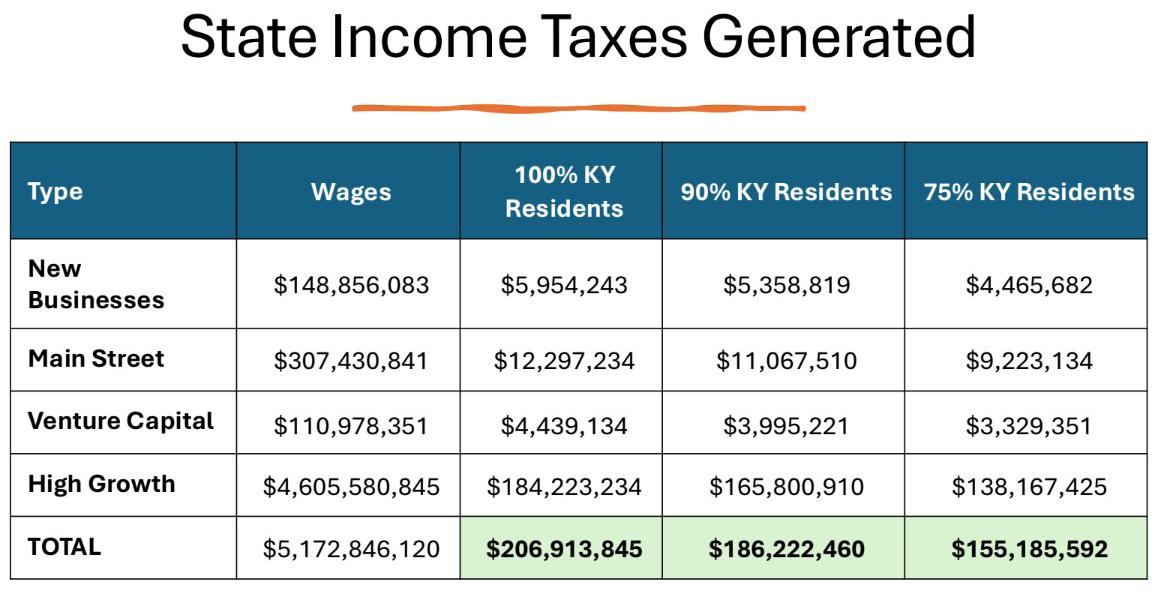The amount of state income taxes generated by each entrepreneurial business sector. Provided | BE NKY, Blue North