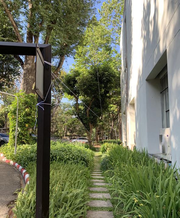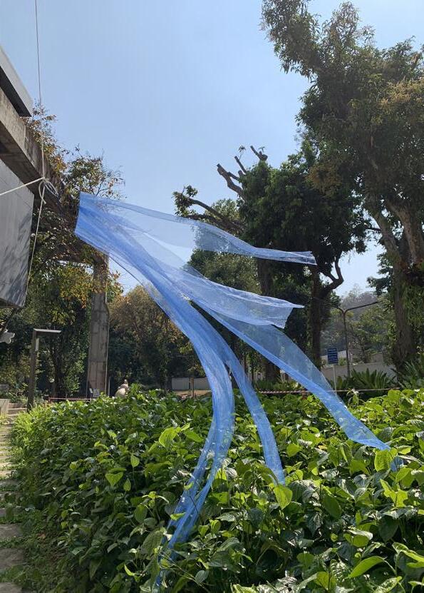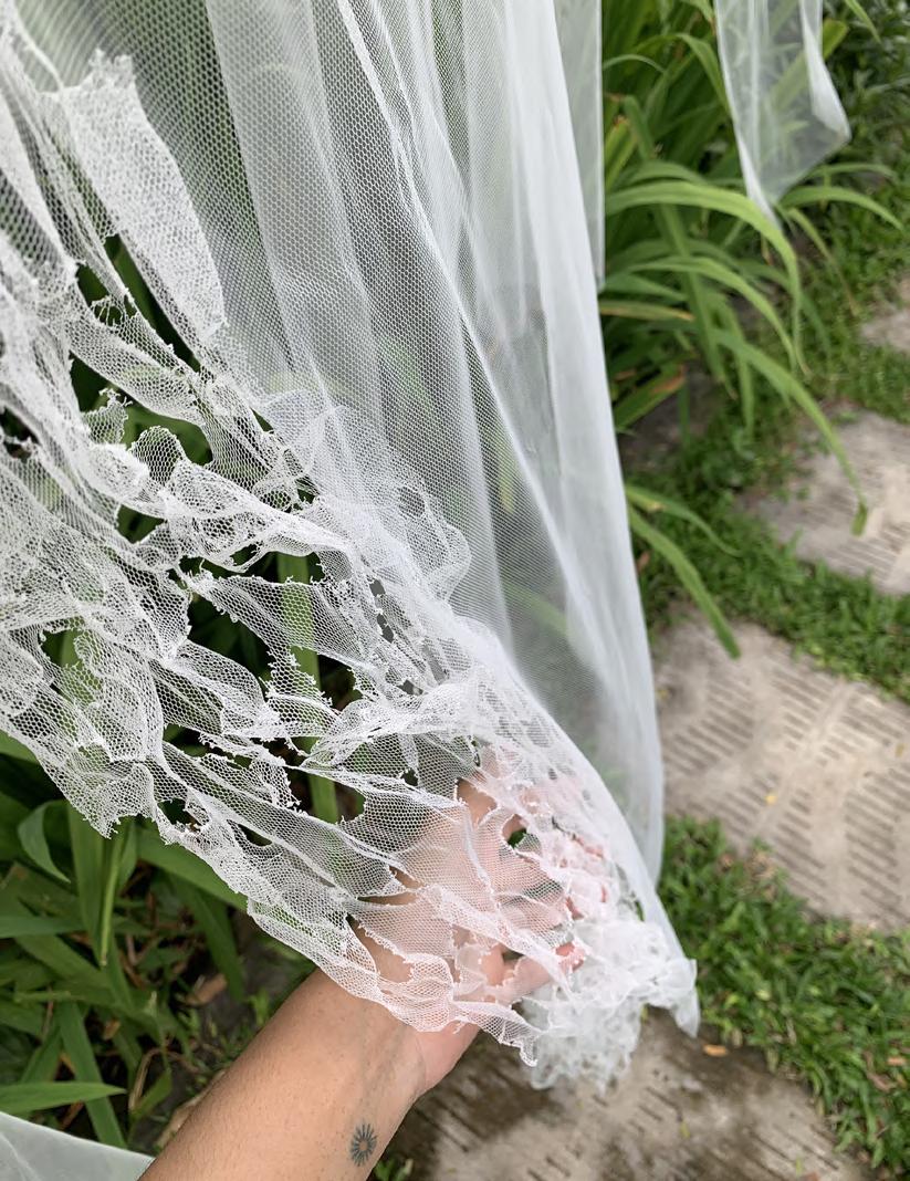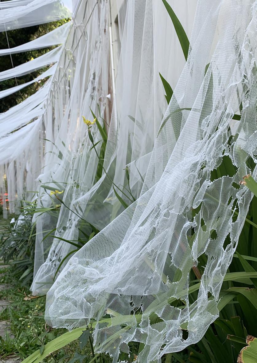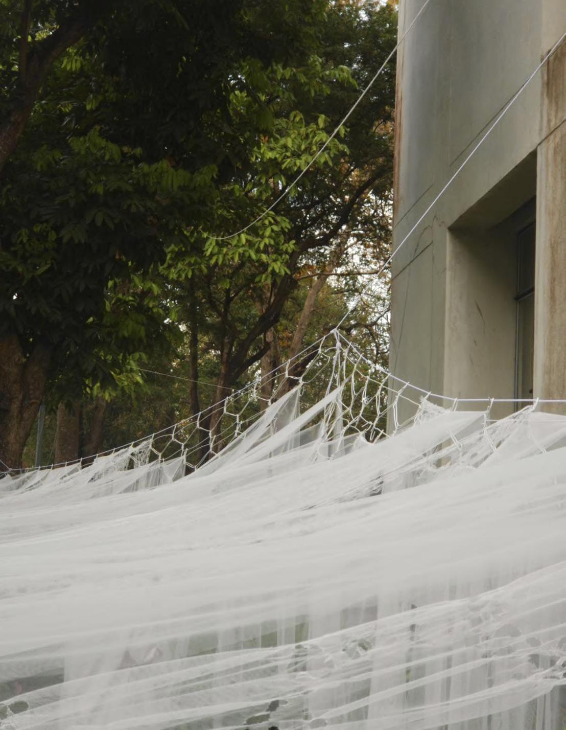 The choice of materials is inspired by the mosquito net, hanging and drying washed clothes where we can see the movement of fabric in the air.