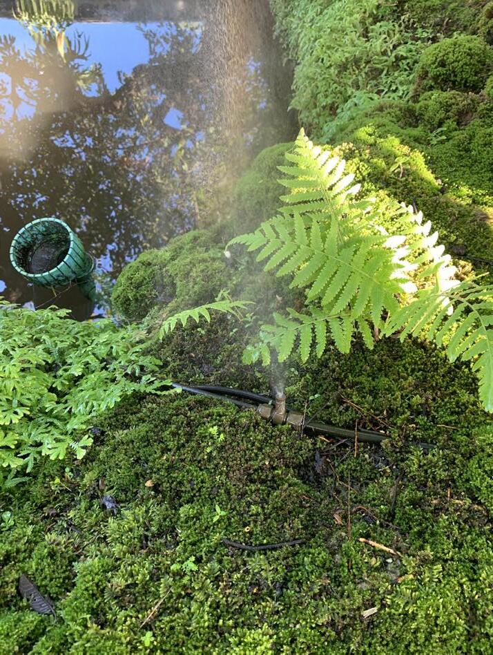 - Water spray from the ground and at a higher place from trees